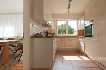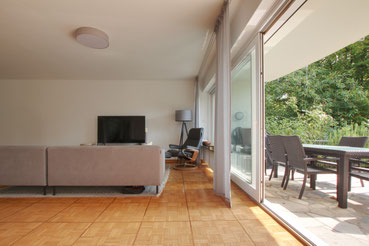 Vom modernen, großzügigen und lichtdurchfluteten Wohn-/Essbereich haben Sie einen direkten Zugang zur Terrasse sowie zum Garten.