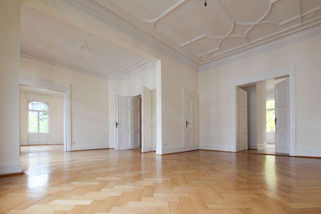 In einem wunderschönen Jugendstil-Altbau befindet sich diese großzügige 5-Zimmer Altbauetage. Mit einem Fahrstuhl gelangen Sie bequem in den dritten Stock. Sie betreten die Wohnung durch eine große Eingangstür mit schönen Glaselementen. Schon im Eingangsbereich beeindruckt die Wohnung durch eine sehr hochwertige Ausstattung. Fischgrätparkett aus Eiche, 3,66 m hohen Decken, detailreiche Stuck-Arbeiten, original Fenster- und Türgriffe, sowie zahlreiche wunderschönen Elemente geben der Wohnung einen ganz besonderern Charakter. Besonders detailierte Holzarbeiten der Türen sind für jeden Altbauliebhaber eine wahre Freude. Durch die vielen sehr großen Fenster ist die Wohnung besonders sonnig und Sie haben eine hübsche Aussicht auf die benachbarten Altbauvillen und alten Baumbestand.