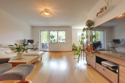 Die Wohnung überzeugt durch ihre großzügige und helle Raumaufteilung. Der offen gestaltete Wohn- und Essbereich lädt zu gemütlichen Abenden und geselligem Beisammensein ein. Große Fensterfronten durchfluten die Räume mit Tageslicht und schaffen ein freundliches Wohnambiente.