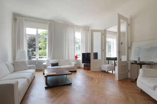 Wunderschöne Fußböden und eine edle Ausstattung prägen den Charakter dieser lichtdurchfluteten Wohnetage.